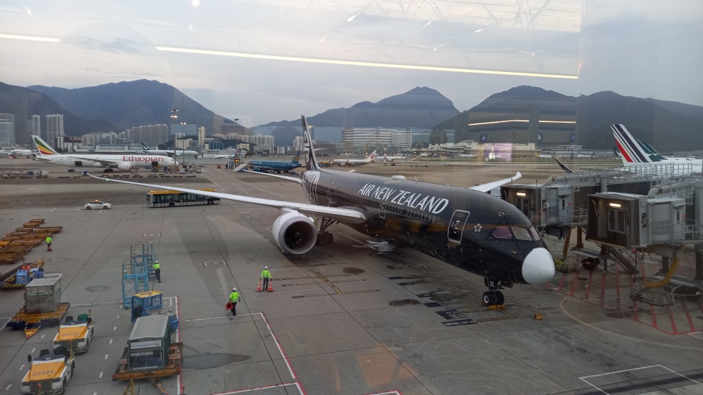 I sat and chatted at the departure gate with the friendliest group of flight attendants I’d ever met. No wonder Air New Zealand often comes out tops in people’s favourite airlines, not necessarily due to the seats, food or anything else which is pretty much on a par with other airlines, but more to my mind the very genuine flight attendants and their service. They all seemed to be enjoying every minute of their jobs throughout the flight, joking with each other, and chatting to the passengers. Just gorgeous people.