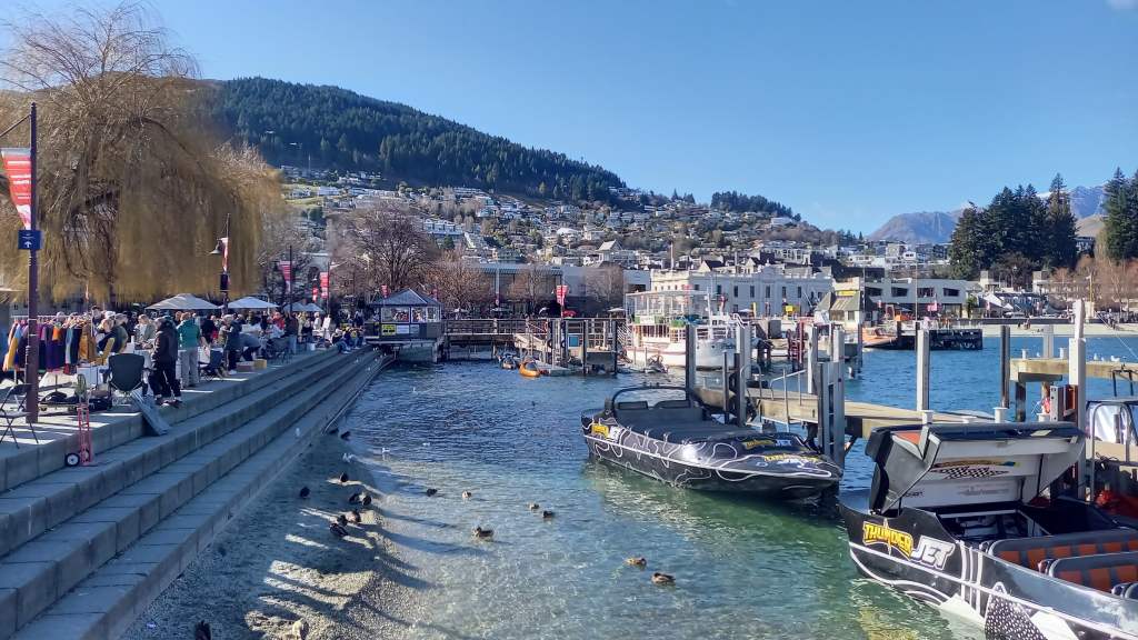 After collecting my bags from my accommodation, I said a sad goodbye to wonderful Dunedin, and took the Intercity bus to Queenstown, South Island’s tourist central, around five hours away. New Zealand’s coach network has comfortable buses, but surprisingly no toilets on board, so instead we stopped off halfway at one of those fantastic random roadside places to go to the loo and refresh. The journey traversed some beautiful countryside of the South Island, and it was nice to let someone else do the driving, so I could appreciate the views instead, and also not constantly worry about the speed limit. I was very much looking forward to my time in and around Queenstown, and after a quick food-shop at a central Four Square supermarket, I headed to a fantastic budget accommodation with shared bathroom and kitchen (still my priciest digs throughout my time in the country – Queenstown is expensive!), and an amazing view over the town, lake, and hulking great snow-covered mountains beyond. It would be my home for the next three nights, which felt quite the relief, considering this would be my sixth night in a row sleeping in a different bed!