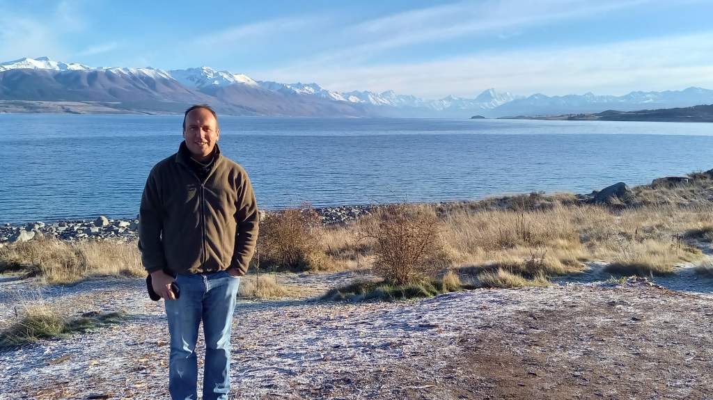 After a bit of grocery shopping, noting how very very friendly the local people were, I walked the mile-or-so to my accommodation, across the Lake Tekapo Bridge crossing the Tekapo River, and up a bit of an incline. The digs were just great – a cheap and cheerful cabin in the front garden of a former travelling Kiwi who has now settled down to family life there with his wife and three boys. He was a friendly chap, an old-school traveller of the kind I could quite easily have met on my early travels in places like South America in the early 2000s. He also doubled as the town’s ice hockey referee, which I realized after having seen him in action later that day at the local ice hockey rink situated in the Tekapo Springs. Definitely a typical Kiwi, a resilient, resourceful, go-get-em type of a guy, who always seemed up for anything. Or is that a typical Aussie…?
