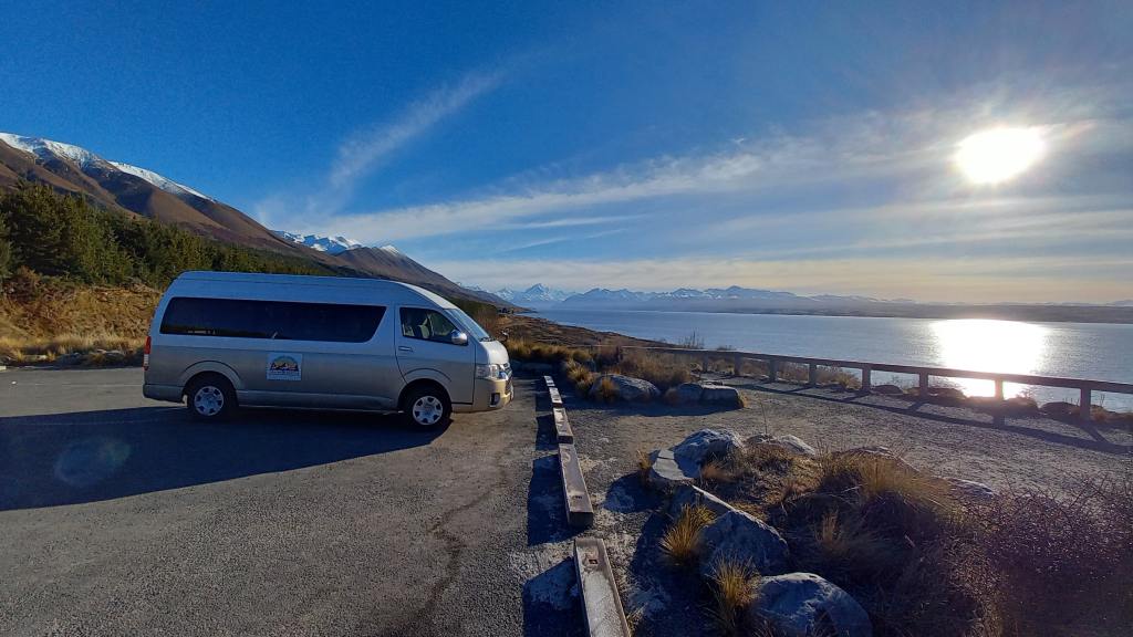 We then headed through the nearby town of Twizel, whose name I just love, and then skirted beautiful Lake Pukaki, with views across its cold glacial waters over to New Zealand’s highest mountain, Mt Cook, poking its head out of the snow-capped mountain range in the distance which pretty much lined our horizon to the west for the whole journey. After Lake Pukaki, we then headed towards the next ribbon lake along the way, Lake Tekapo, and while the coach was to continue on to Christchurch, I alighted here to spend the next two nights using this gorgeous little town as a base for my Southern Alp explorations.