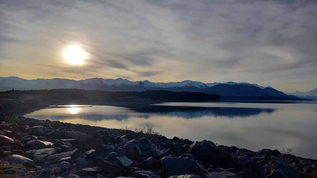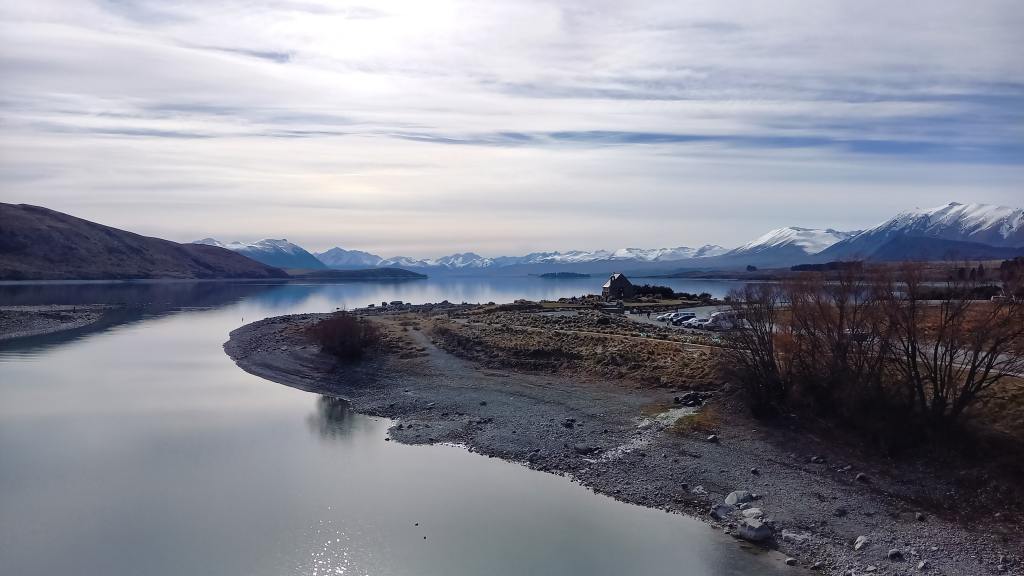 My walk then took me around the southern edge of Lake Tekapo westwards, towards the Tekapo Springs – also more on that later. Lake Tekapo is the third of a trio of ribbon lakes from west to east, carrying glacial meltwater from the stunning snowcapped mountains of Mt Cook and its neighbours. Along with Lakes Ōhau and Pukaki further west, it empties its water out into the large and braided Waitaki River to the south, before winding its way to the Pacific Ocean to the east. All three lakes are stunning beauties, whose attraction is greatly added to by the rising backdrop of a horizon just filled with mountains. This was to my mind the classic South Island scene that I was so looking forward to seeing.