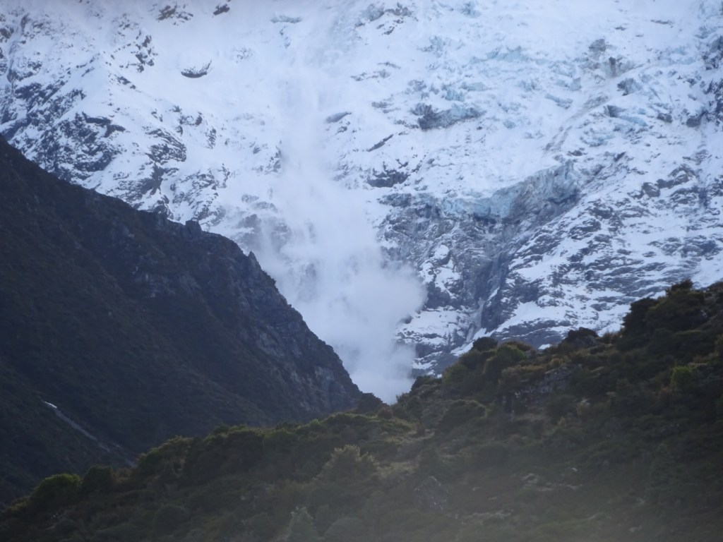 My first hike was to the Tasman Glacier and Lake, with stunning views over the green waters and bits of ice that had broken off the glacier further up the valley. Then I did one to a place called Kea Point, for wonderful views over Mueller Lake towards Mt Cook itself in the background. Finally, I headed up the Hooker Valley as far as the First Swing Bridge over the Hooker River. Just as I was reaching the end of this hike, I heard a rumbling in the far distance, and actually witnessed an avalanche down the side of one of the mountains! I was even able to catch this on camera – wow!