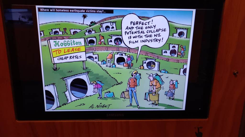 Being practically the only visitor there, I really enjoyed the ten-minute, half-mile ride up the mountain, and exploring the interesting Summit Station at the top, all to myself. There was a decently-priced gift shop up there, fascinating displays on the region’s history, geography, wildlife and culture, and a really cool, unexpected short ride called the Christchurch Discovery Ride which really immerses the visitor in the same. There were queue markers going in saying things like “you have a 45-minute wait from here”, but again I was the only visitor and went straight on the ride – awesome, if only Disneyland later on in my trip was like that…!