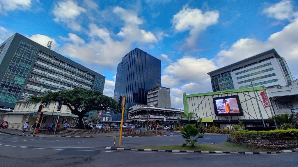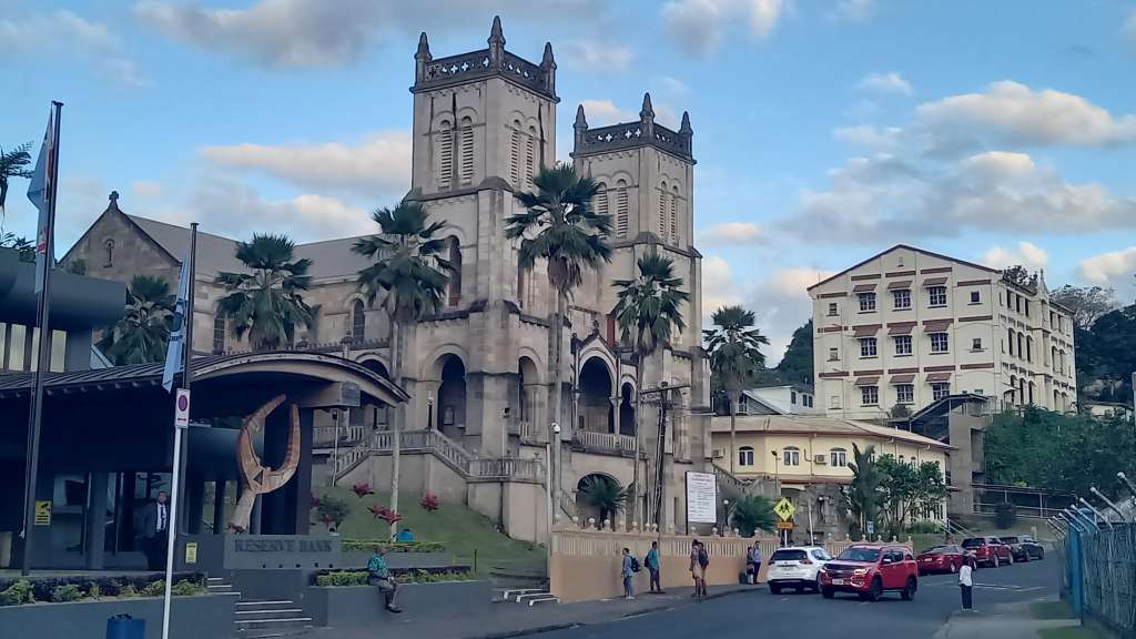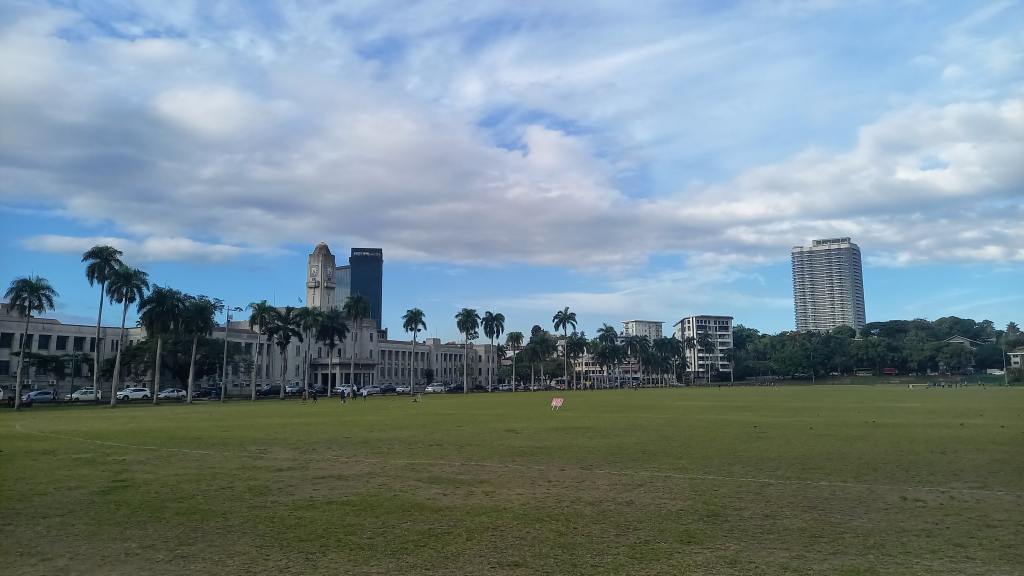 We were actually driving a long time, 40 minutes through the suburbs of this comparatively large urban conglomeration, to my accommodation in the city centre. This turned out to be a grand old dame of a place at a bargain of a price, built just after World War Two by the British and Americans as they were developing Fiji following the Japanese defeat in the Pacific War, and currently home to a lovely Indian lady and her family. My self-contained apartment with living room, dining and kitchen area, bedroom and bathroom was spacious with lovely furniture and high ceilings, and was slap bang right in the middle of the embassy area in the centre of town. I had just enough time that evening to down my bags and do a quick walk around before the sun set, after which I’d rather be back in my accommodation after the stories I’d heard back in Taveuni from my policeman-driver-guide there.