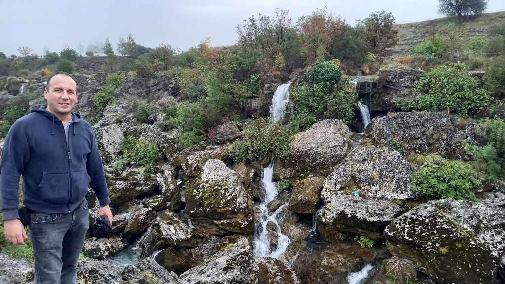 Passport control at the small airport was a long queue with just two officers on duty, but they were really fast, and it went quickly. My hotel had arranged a taxi to meet me at the airport, and I’d also arranged for it to take me to my first sight on this trip – the rather ambitiously-named “Nijagara Falls”, a short drive away from the airport. On the way, we were held up in a “cow-jam”, which made me realise I wasn’t in Kansas any more, but back in the Balkans again!