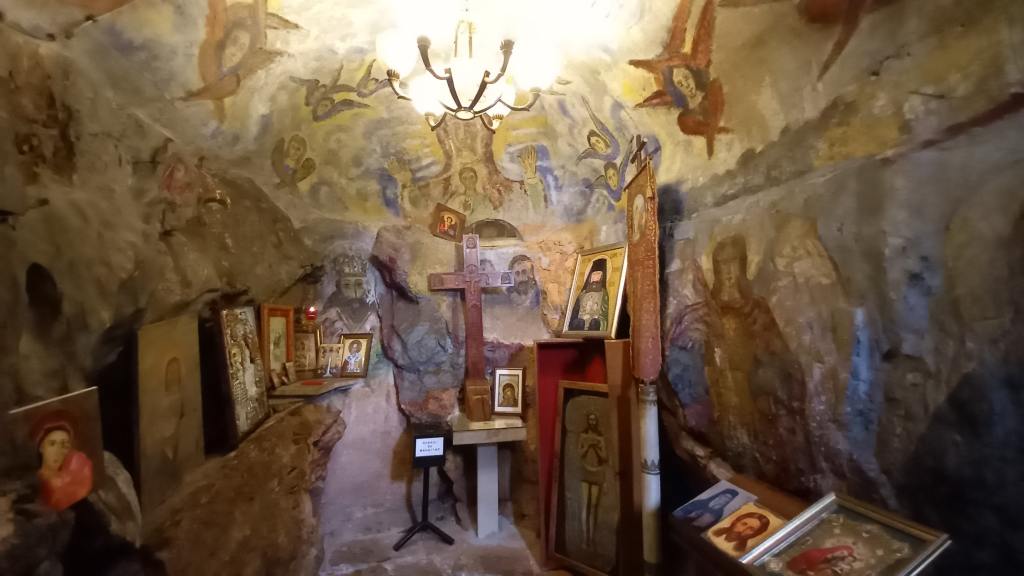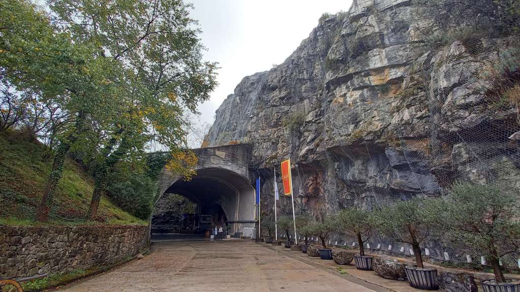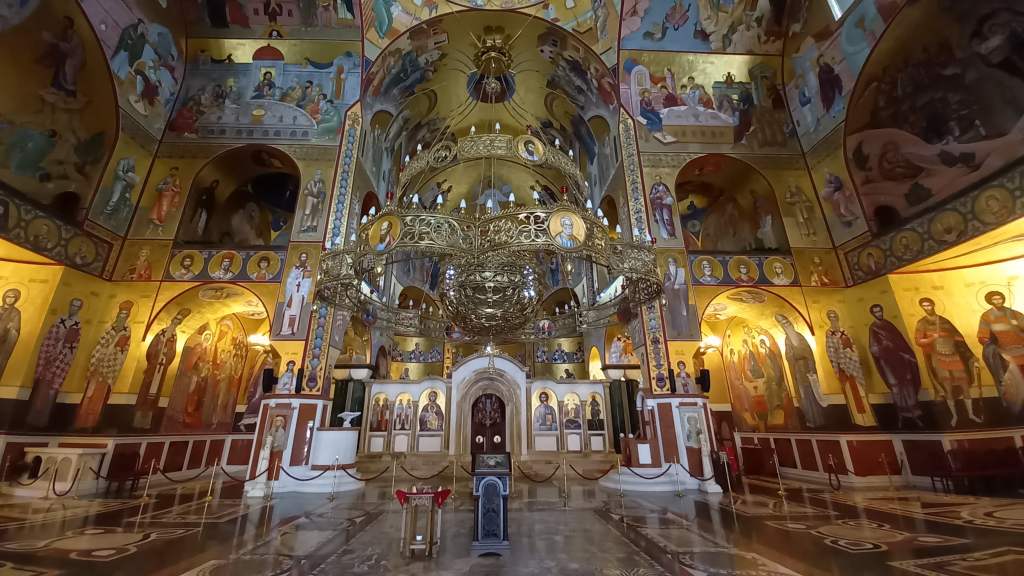 I started off the day by taking a bus from the bus station to visit the lovely Dajbabe Monastery just on the southern edge of town. It would have been a short walk from the bus stop, but I ended up taking a roundabout route of about a mile to try to avoid a stray dog which had taken a liking to me. Yes, I am back in a stray-dog country again, definitely not my favourite. This one was jumping up at me and wanting to play, getting a bit too frisky with its mouth, so I ended up walking along a dual-carriageway away from its territory, then through an industrial estate, and across a railway line to eventually get to there. All the while keeping an eye out for any further mangy mutts. Fortunately there weren’t any, and the Monastery was absolutely worth the trouble getting there. The Orthodox church is built over the entrance to a cave with tunnels leading to three separate areas of cave paintings and icons, and had a real sense of peace around it. Having the place to myself also helped! The caves were once dwelt in by solitary Monk Simeon Popović, who painted the frescoes during his time there from 1897 to his passing in 1941, and it had since become a place of pilgrimage for Orthodox Montenegrins and others. It had a peaceful and calming vibe to the place, and I enjoyed my time there.