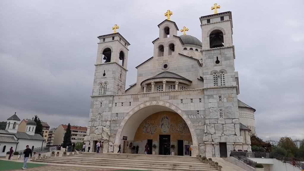 I then took a bus back to the centre again, for a walk around the streets west of the Morača River. These seemed to date back more to the Former Yugoslavia-era of brutalist architecture, with block upon block of communist apartment buildings, which I just love! I admired what my Lonely Planet describes as one of the city’s few landmarks, the imposing Millennium Bridge over the Morača River built in 2005, visited the highly imposing and newly-built Orthodox Temple of Christ’s Resurrection with its gorgeously ornate interior, dating back only to 2013, had an absolutely delicious lentil curry and roti bread lunch at a local and very authentic Indian restaurant which felt so exotic bang in the middle of communist-block central, and enjoyed a peaceful walk through Petrovic Park surrounding the rather humble Petrovic Palace, once a winter residence for the 19th century Montenegrin monarch King Nikola.