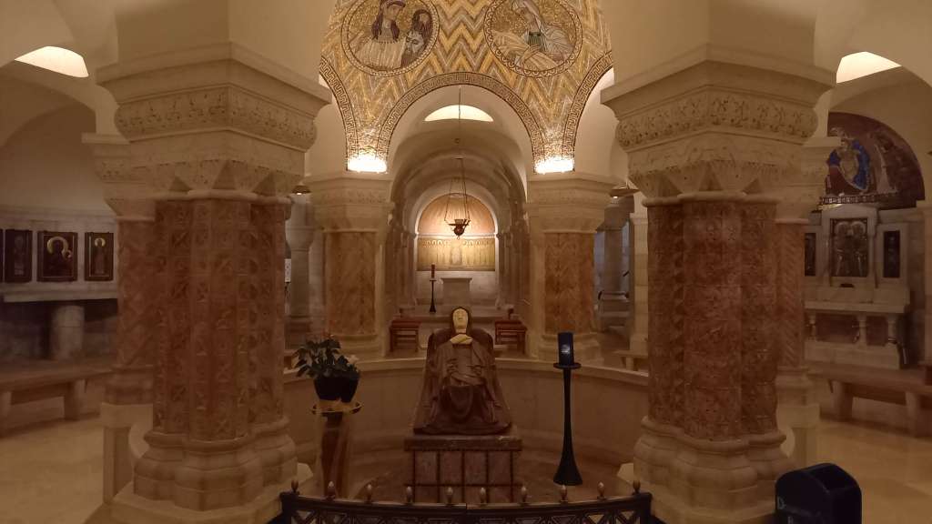 I also visited the Room of the Last Supper, in a room above the tomb of King David, believed to be either the room where Jesus had, well, his final supper with his disciples before his betrayal and subsequent aftermath, or where the Holy Spirit is said to have descended upon the disciples during Pentecost, causing them to speak in tongues and become ready to continue Jesus’ mission after he had died. I then headed to the Roman Catholic Dormition Church nearby, built on the spot where Mother Mary is believed to have passed away. This place became a haven for me later, more on that below.