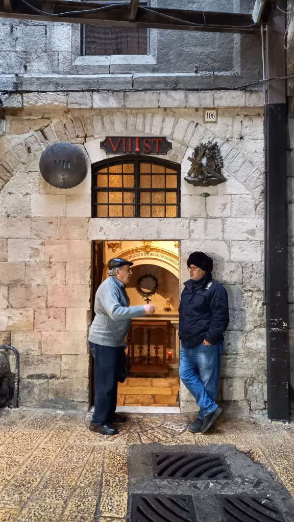 After spending a good two hours up there, reaching the end of the non-Muslim visiting time, and after my fill of Judaism and Islam so far in the city, I was now ready for my own Christianity. I headed to the Lion’s Gate, one of eight gates used to enter the Old City, this one on its eastern edge. It is here that the Via Dolorosa begins, said to be the route which Jesus took from his sentence to Calvary, or Golgotha, where he was crucified. Just like in every Catholic church, there are 14 Stations of the Cross in total along this route, each marking a particular incident which happened on the way to Golgotha. Having done these Stations so many times myself in so many Catholic churches around the world, it felt really powerful to be actually following the same meditative reflections one uses while doing it, but this time in the actual places where they happened. I understand that when tourism is on in Israel, the Via Dolorosa is filled with many groups of pilgrims and can be quite crowded. It was just me on this day doing the route, while the rest of the people in Jerusalem were just getting along normally with their day, hurrying to and fro past me.