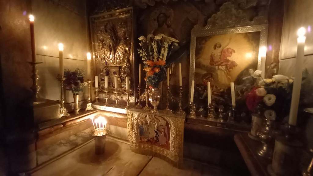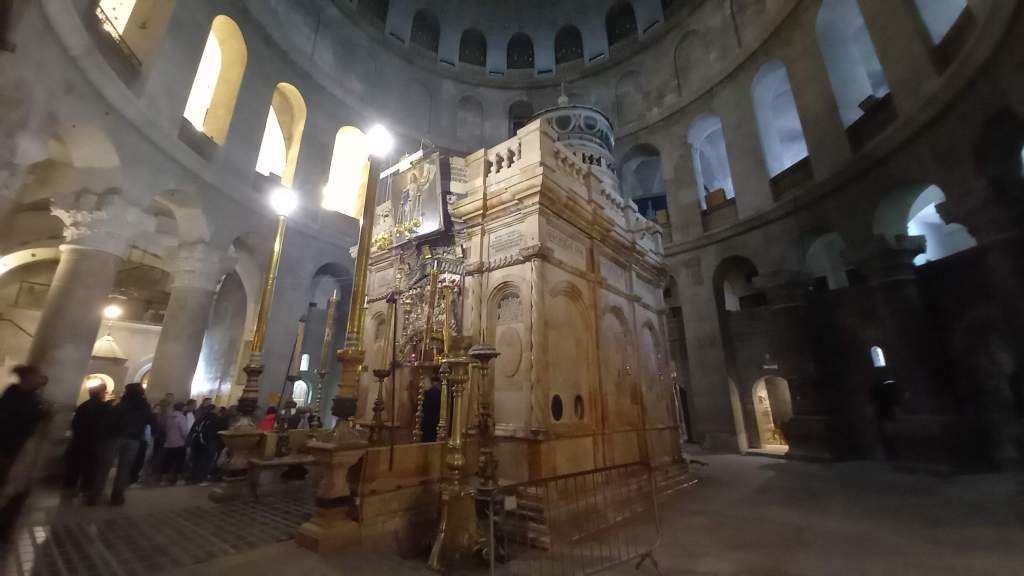 The Stations included the places believed to be where Jesus was scourged, sentenced to death by Pontius Pilate who had given in to the cries of the crowd, made to carry his cross, met his mother Mary, met Simon of Cyrene who helped him carry the cross for a short while, and Veronica who wiped his face with a cloth which is said to have miraculously left his face imprinted on it. There was also the place where he told the women of Jerusalem not to cry for him, but for themselves and for their children, and ultimately where he was crucified and subsequently buried. This is the final Station of the Cross, the 14th one, though on some routes there is also a 15th one marking the culmination of this terrible ordeal in the much more hopeful and jubilatory Resurrection. Both the 14th and 15th Stations are marked here by what is believed by many to be Christianity’s holiest site in the world, the Church of the Holy Sepulchre, dating back to Emperor Constantine’s commissioning of the place in the 4th century, added to by the Crusaders in the 12th century, and today managed by the Greek Orthodox Church.