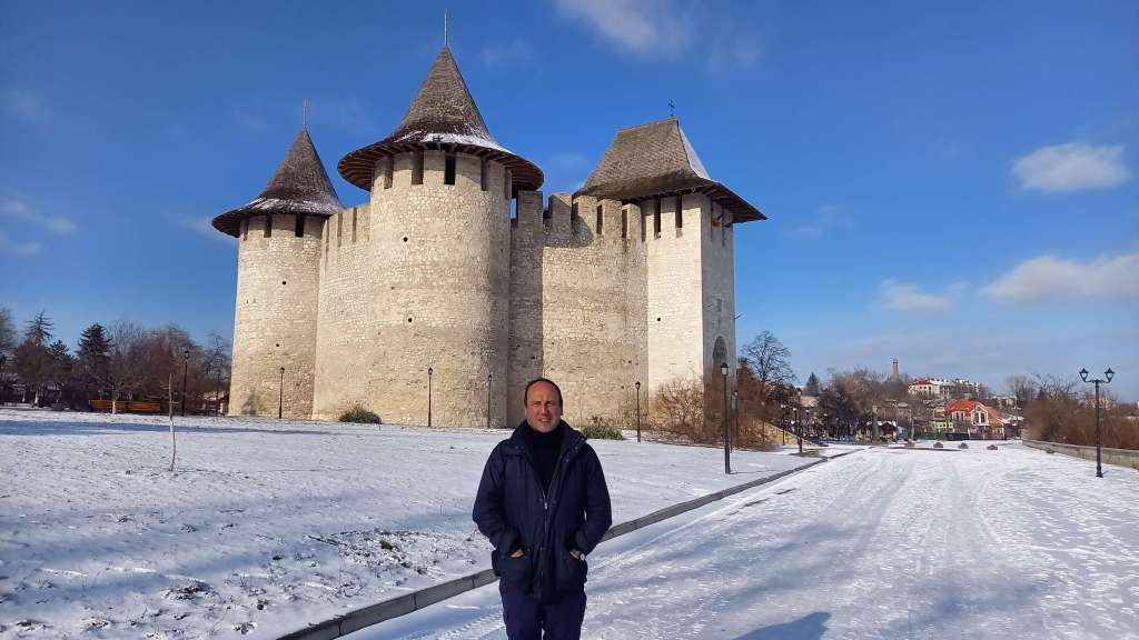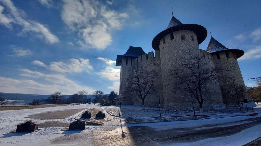 First up was the delightful Soroca Fortress, one of the prettiest little castles I’ve ever seen. It was built in the 15th century by none other than, you guessed it (if you’ve read my previous blog), the omnipresent Stefan cel Mare, medieval Moldovan hero, in defense against advancing Tartars and Ottomans. It’s a small, squat, chunky-style castle, built in a perfect circle with 37.5m diameter walls symetrically interspersed by five bastions. I just loved the turret-tops to the bastions, shaped just like witches’ hats, and quite reminiscent to my mind of the gothic spookiness of nearby Transylvania. It was very unique. While closed for the winter and thus unexplorable on the inside, it was still a delight to see from the outside, especially in the newly-fallen layer of magical white snow.