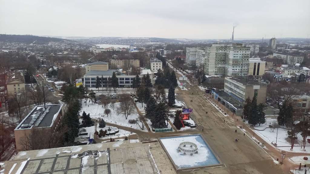 After a lovely lie-in, I headed for an 11.10am marshrutka heading 40 miles to the south-west to my next destination in northern Moldova, its second city of Bălți, population 100,000, and also my favourite type of curry! It was a very basic bus station in Soroca, and black ice was everywhere – one poor chap slipped over with all of his luggage. The journey was again cramped but good, and I once more got a single seat to myself – better than sharing a double seat with a babushka and all her luggage, I can tell you that! Though after stopping in the town of Florești, the road was substantially potholed, and we bounced for most of the rest of the way.