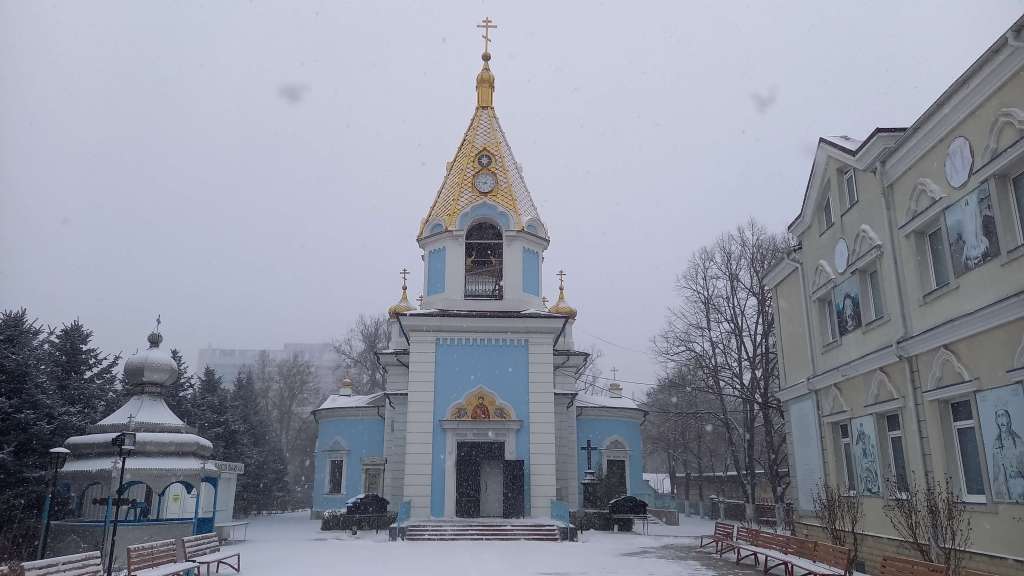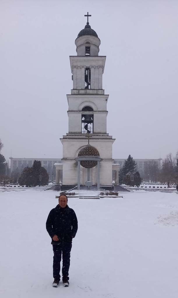 From there I took a walk through blizzard-like conditions to the large central Cathedral Park, home to the 19th century Metropolitan Cathedral of Christ’s Nativity, and its attached and oft-photographed Bell Tower, which seems to have become the city’s landmark. Nearby was the Triumphal Arch, built in 1846 to commemorate the victory of Russia over the Ottoman Empire in the 1820s, and the city’s famous row of 24-hour flower stalls which were doing a roaring trade when my tour group had driven by them a few days earlier on Valentine’s Day evening. Moldovans love both wine and flowers, and seem to be a rather romantic people – perhaps the Spanish-Italian types of the former Soviet Union.