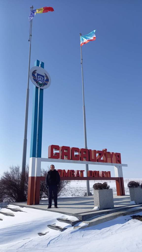 Shortly after, we crossed the “border” into Gagauzia itself, stopping at a large and striking “Welcome to Gagauzia” sign. We had to be careful negotiating the drifting snow that had accumulated there, reaching knee-deep in places! There were evidently not too many other visitors on this trip, as there were no other footsteps in the snow but ours.