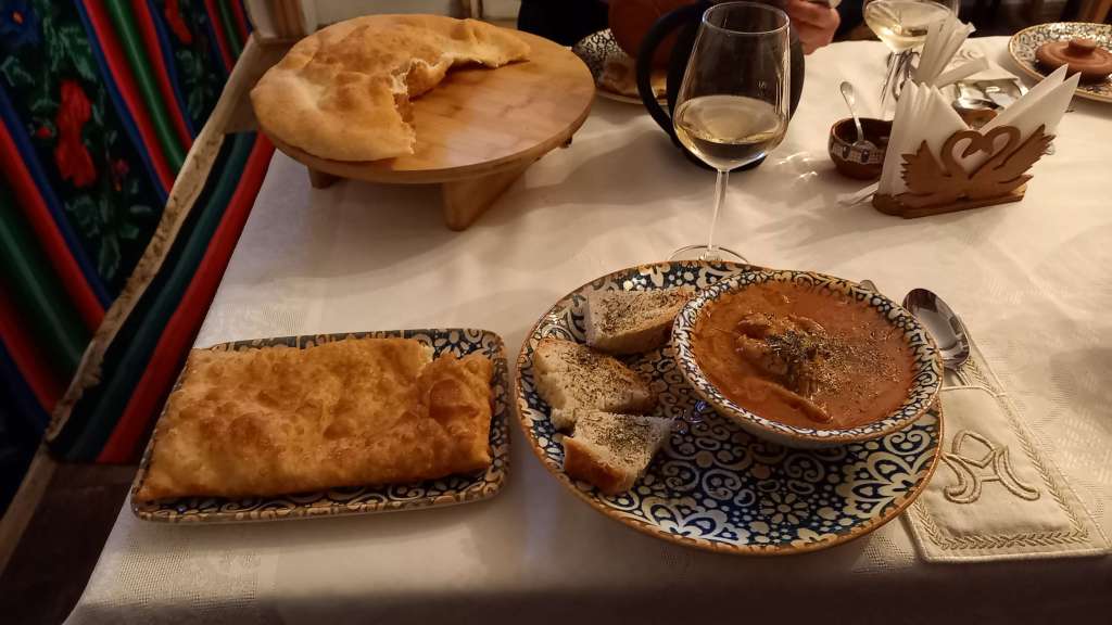 Finally for the day, we had a late lunch at a traditional Gagauzian restaurant in the village of Congaz, at 4.30pm…! We were running a bit behind schedule already, and as the afore-visited Museum closed at 4pm, we did that first and held onto our appetites for a while longer. It was so worth it! I had chicken in a very rich sauce with delicious local fried flat bread filled with sheep’s cheese. All washed down of course with plenty of local Gagauzian wine – yes, along with Transnistria and also the rest of Moldova, Gagauzia is also filled with vineyards and wineries. As mentioned in a previous blog, wine doesn’t even count as alcohol in the country, and they drink it like water – I wasn’t complaining. It made the dark journey back much easier, with loads of laughter as we watched stand-up comedy on YouTube most of the way. While we were due back for 5.30pm, it was actually 8.30pm when we rolled into town! I’m smiling as I write this, as we all clearly had a good time, and the wine and the company very much helped! I was spending my last night in this wonderful and highly unique country at the fantastic Chișinău Hotel again!
